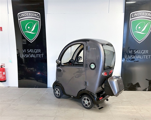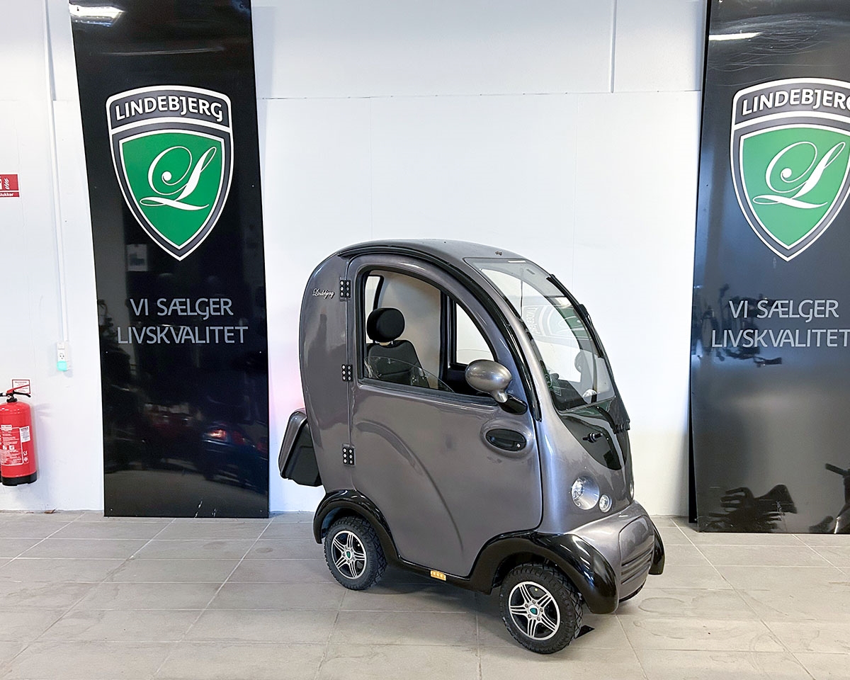 Flot City kabine i grå farve, som giver dig friheden til selv at komme omkring. Tag en køretur i ly og læ for vind og regn med denne fine kabinescooter. Må køres efter samme regler, som hvis man færdes på en cykel. Med en 4-hjulet kabinescooter kører du stabilt og er solidt plantet på jorden.
