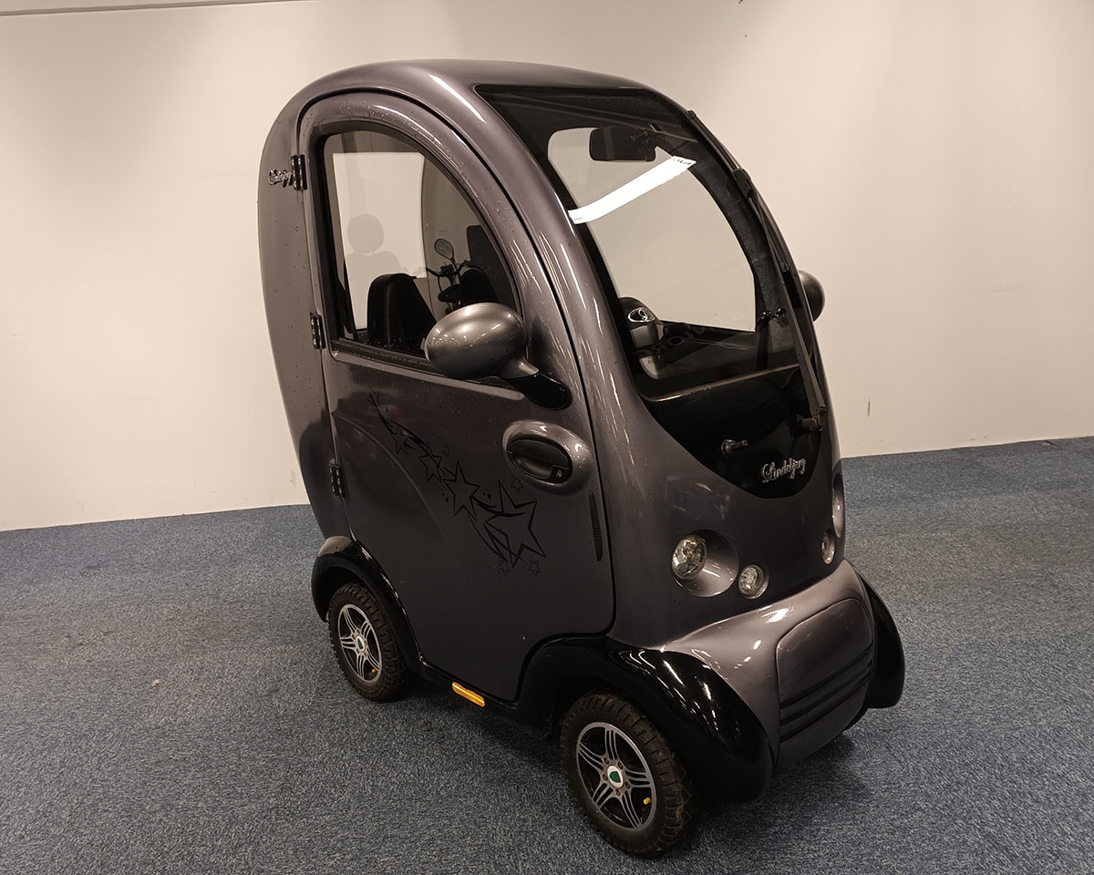 En kompakt kabinescooter, der giver dig friheden til at komme sikkert frem – uanset vejr og årstid. Den lukkede kabine beskytter mod regn, vind og kulde, så du kan køre komfortabelt hele året.
