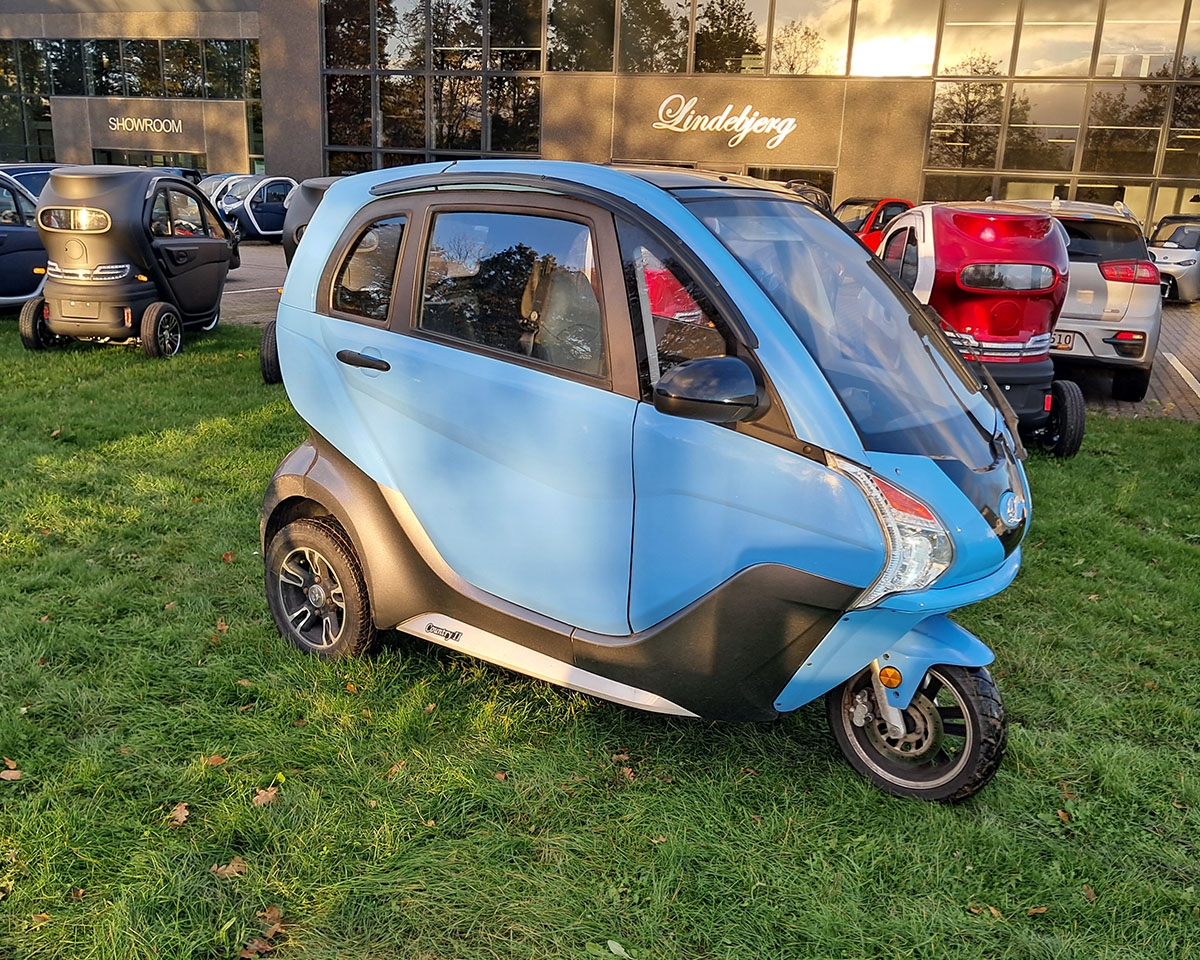 Brugt luksus kabinescooter med god plads til 2 personer. Kabinescooteren er udstyret med alt det nødvendige tilbehør og står i en flot blå farve. Dette køretøj er perfekt til kørsel året rundt og sidder trygt i ly for vind og vejr. Lindebjerg Country II er bygget med komfort for øje og har meget af den nyeste teknologi, som du kender fra nye biler i dag.