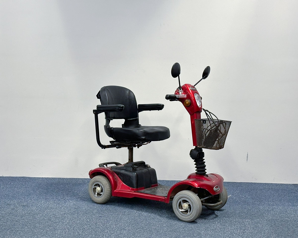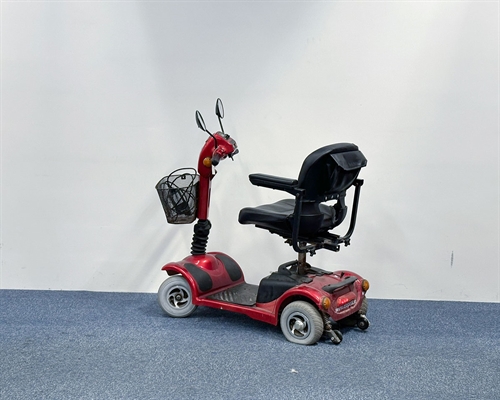 Brugt 4-hjulet scooter udstyret med forkurv til indkøb. Scooteren er solid og er især god til korte ture.