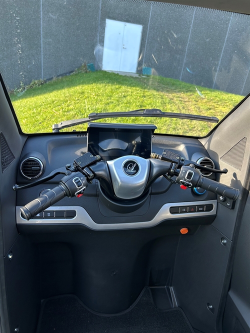 Brugt luksus kabinescooter med god plads til 2 personer. Lindebjerg Freedom tilbyder komfortabel og sikker transport under alle vejrforhold. Med store døre og en rummelig kabine er det nemt at stige ind og ud af køretøjet.