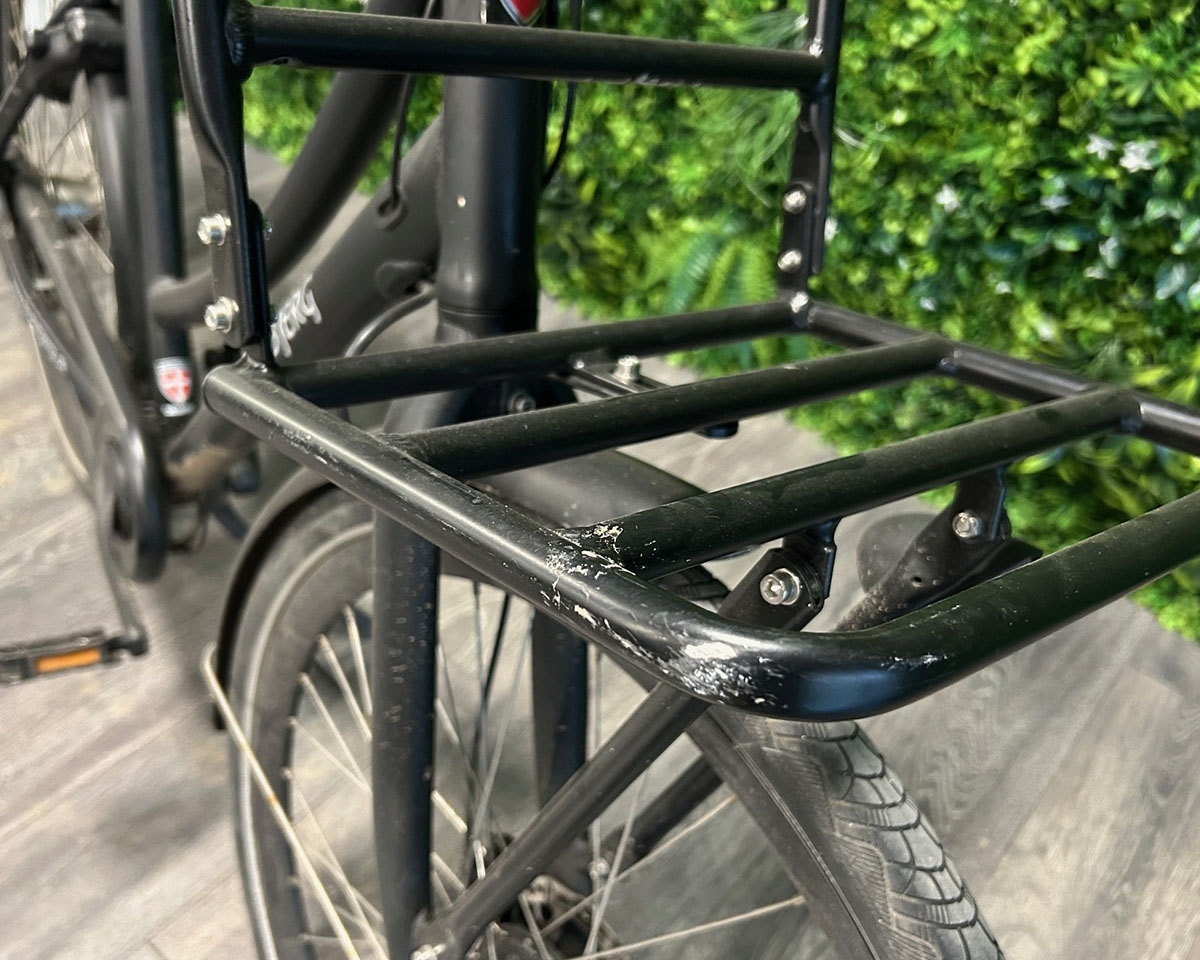 Brugt Front Cargo elcykel, der er perfekt til praktiske opgaver og daglig kørsel. Den er udstyret med en stærk forhjulsmotor, et solidt batteri og et stabilt frontlad til bagage, varer eller udstyr. Cyklen kører godt, er driftssikker og ideel, hvis du ønsker en elcykel med ekstra lasteplads og let håndtering.