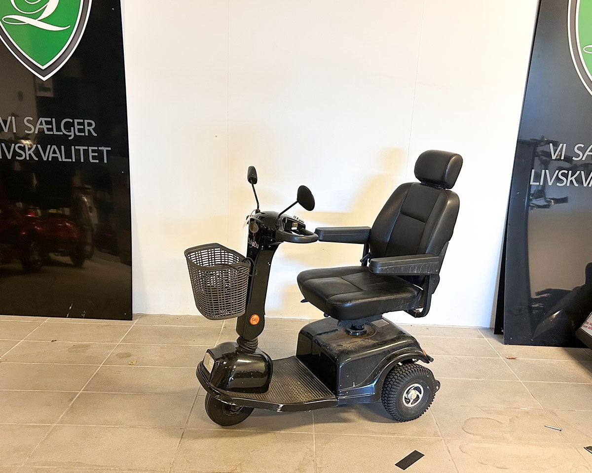Brugt 3-hjulet el-scooter i en neutral sort farve, som er perfekt til de korte ture ind til byen. Denne scooter færdes godt både inde og ude. Hér er komfort og køreglæde helt i top. Ved køb af nye 45ah batterier får du ovenikøbet en god lang kørestrækning på op til 40km.