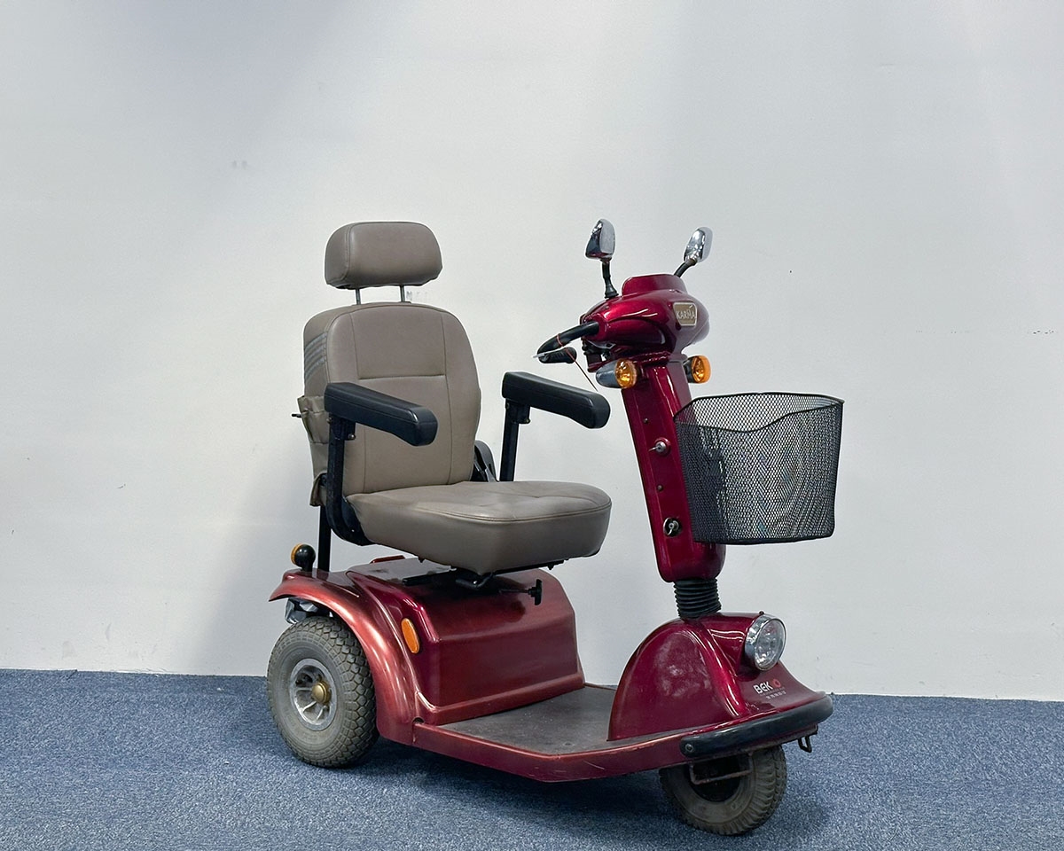3-hjulet el-scooter i en flot rød farve. Sædet er udstyret med justerbare armlæn og nakkestøtte, så køreturen er dejligt behagelig. Scooteren er nem at betjene og meget manøvredygtig - så du kommer let omkring i byen eller på landevejen. Scooteren er pålidelig under kørsel og har en god rækkevidde.