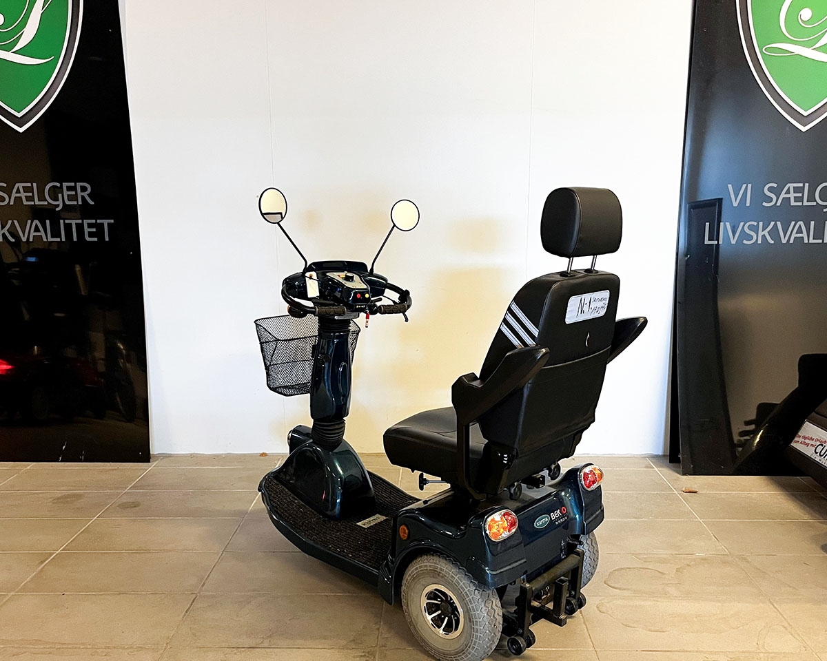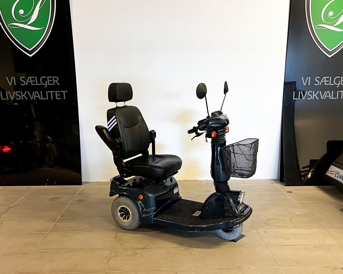 Brugt 3-hjulet el-scooter. Sædet er udstyret med justerbare armlæn og nakkestøtte, så køreturen er dejligt behagelig. Scooteren er nem at betjene og meget manøvredygtig - så du kommer let omkring i byen eller på landevejen. Scooteren er pålidelig under kørsel og har en god rækkevidde.
