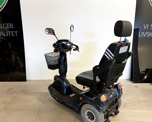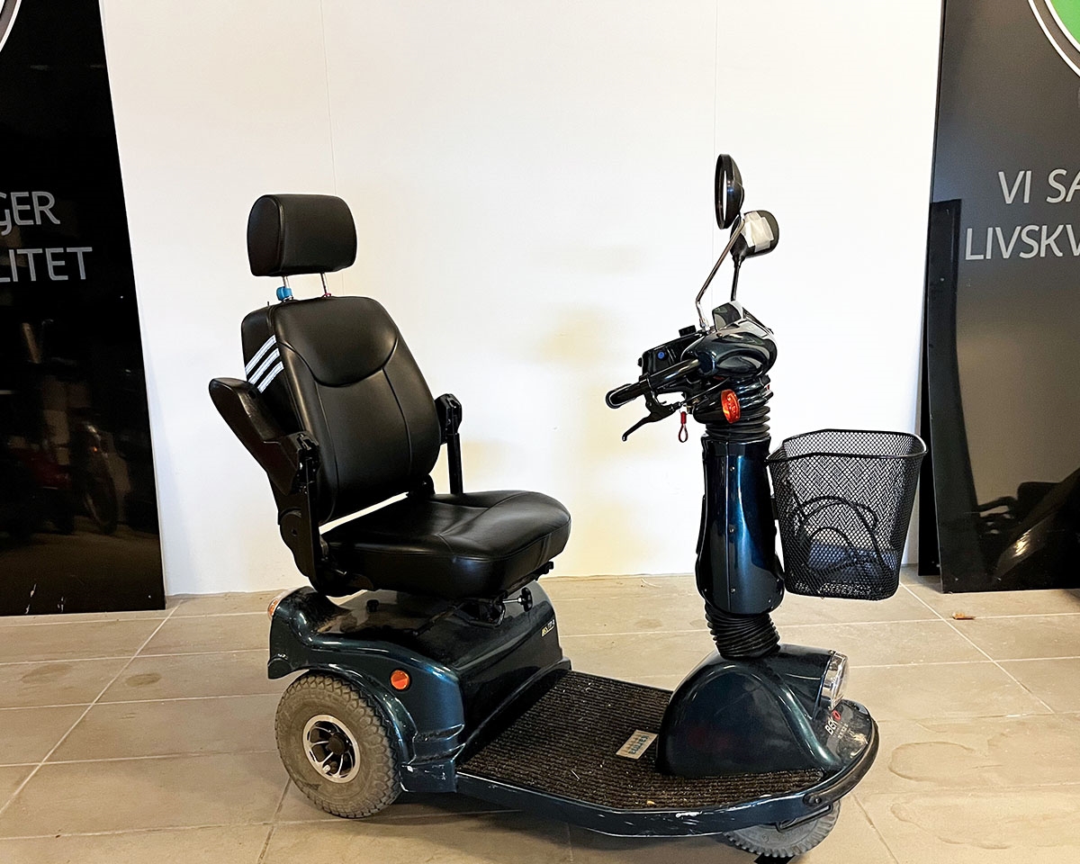 Brugt 3-hjulet el-scooter. Sædet er udstyret med justerbare armlæn og nakkestøtte, så køreturen er dejligt behagelig. Scooteren er nem at betjene og meget manøvredygtig - så du kommer let omkring i byen eller på landevejen. Scooteren er pålidelig under kørsel og har en god rækkevidde.