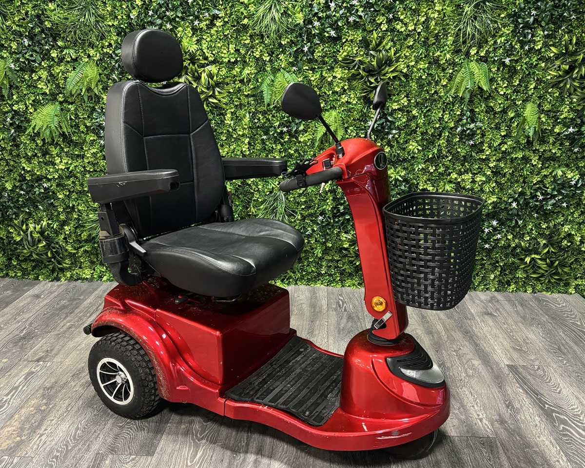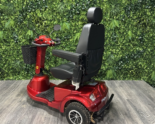 Brugt 3-hjulet el-scooter i en flot rød farve, som er perfekt til de korte ture ind til byen. Denne scooter færdes godt både inde og ude. Hér er komfort og køreglæde helt i top.