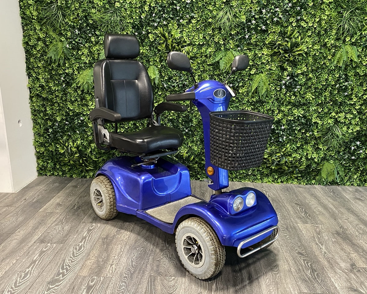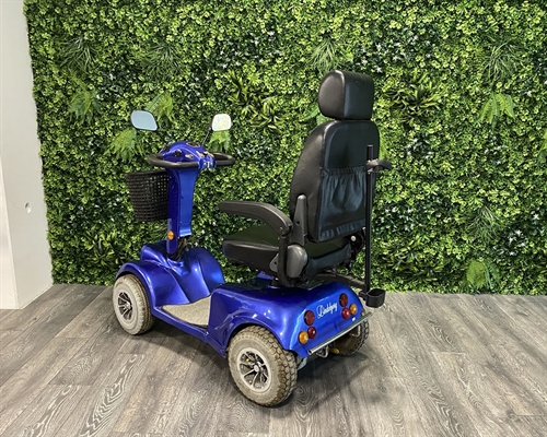 Brugt 4-hjulet el-scooter med store gode hjul, så stabiliteten er helt i top. Denne scooter er god til både de korte og de lange ture. Størrelsen er god til bykørsel eller længere ture ude i det fri. Desuden er den nem at have med ind i butikker og lignende.