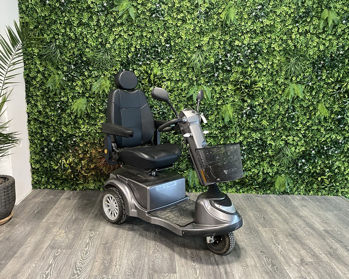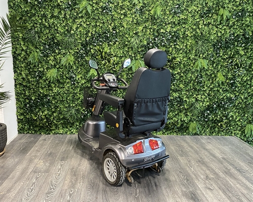 Det komfortable sæde har armlæn og nakkestøtte og sikrer en behagelig køretur, uanset hvor du skal hen. Scooteren er nem at betjene og har motorkraft nok til at klare selv ujævnt terræn, så du kan færdes trygt på både veje og stier.