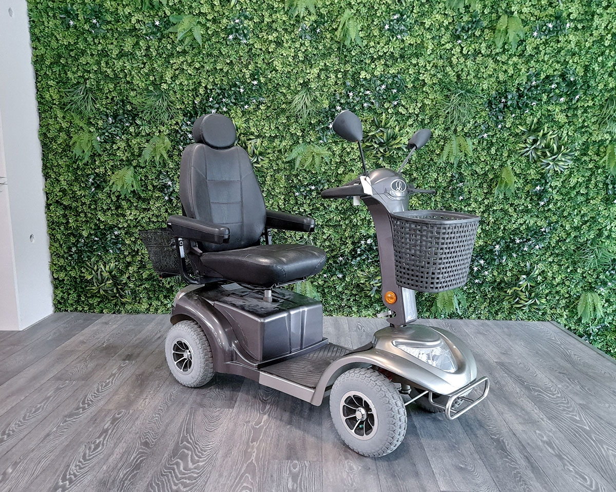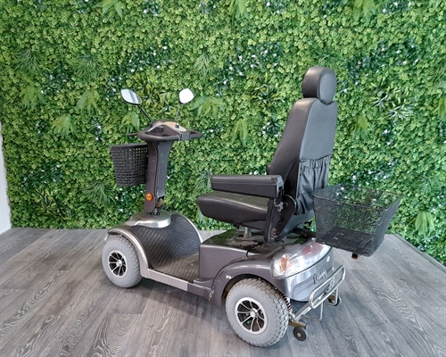 Brugt 4-hjulet el-scooter, som er god og pålidelig med komfortsæde. Scooteren er både god til de korte og de længere ture, og kører godt inde i byen eller ude i de fri. Foran er der monteret en lille forkurv til diverse bagage.