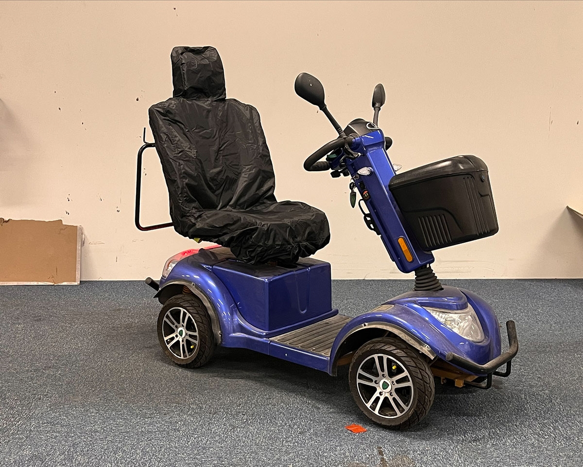 Brugt LM-600 i en flot blå farve. Scooteren besidder 4 gode store hjul og en kraftig motor, så køreglæden er helt i top. Sædet på scooteren er udstyret med justerbare armlæn og nakkestøtte. Oplev glæden ved en af Lindebjergs mest populære og roste scooter-modeller.