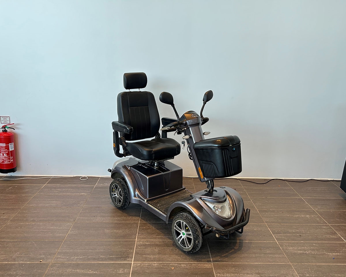 Brugt 4-hjulet scooter i en flot neutral farve. God til alt terræn med gode store hjul. Let betjenelig og med kraftig motor så køreglæden er helt i top samt et smart digitalt display. Scooteren er udstyret med komfortsæde m. justerbare armlæn og nakkestøtte og en frontboks til ekstra bagage.