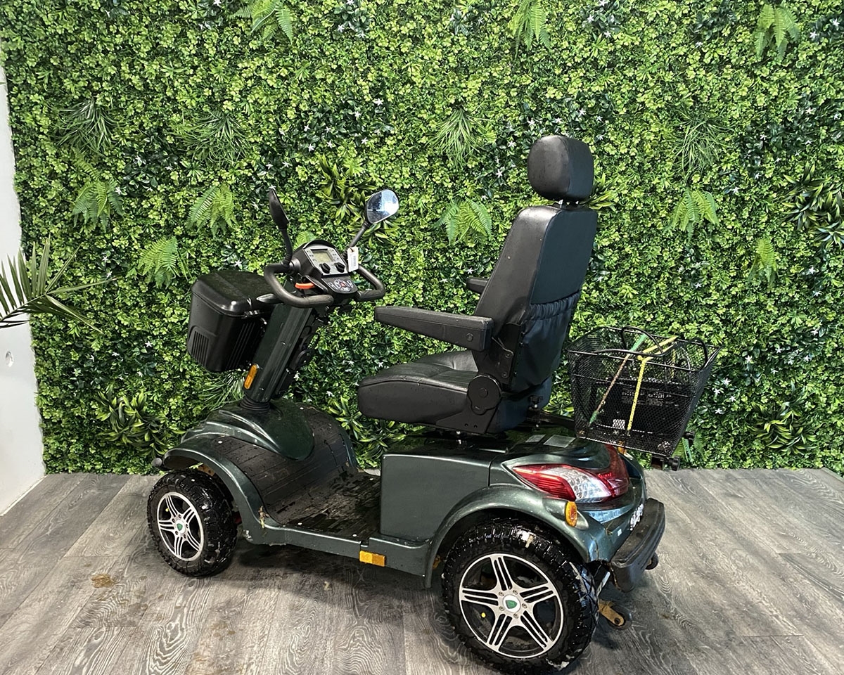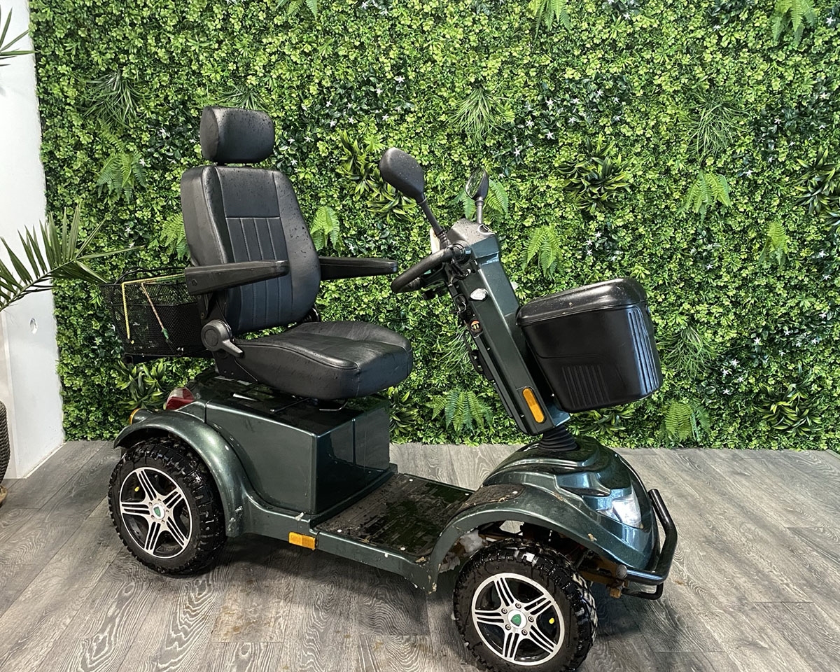 Brugt el-scooter med masser af god plads til opbevaring. Scooteren er en stor og kraftig model, som kan forcere vanskeligt terræn.