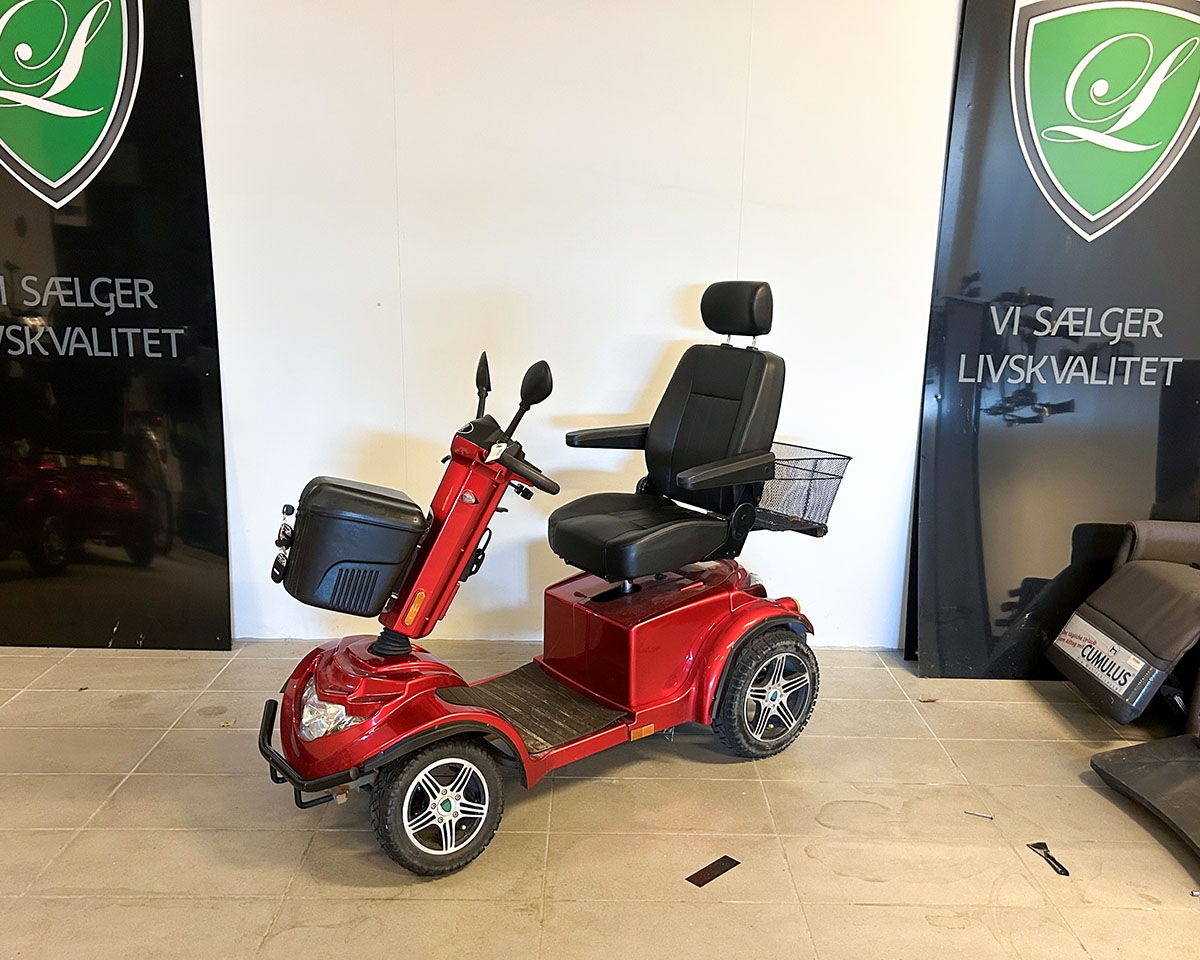 Stærk, lydsvag og ekstrem komfortabel el-scooter med affjedrede hjulophæng. Scooteren er perfekt til den lange tur, hvad end det er på vejen eller i svært terræn. Sædet er udstyret med justerbare armlæn og nakkestøtte og den er udstyret med en lukket frontboks med plads til alt slags bagage.