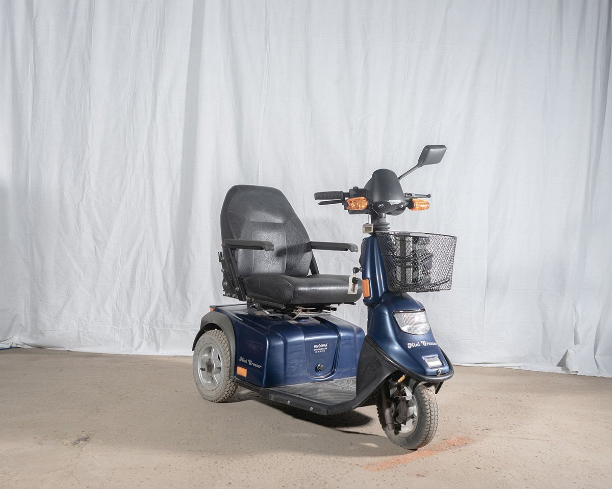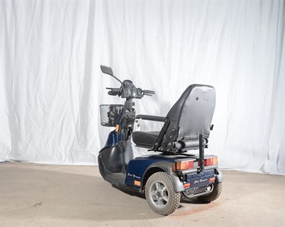 Let og manøvredygtig brugt 3-hjulet el-scooter. Scooteren er let betjenelig og besidder gode køreegenskaber.