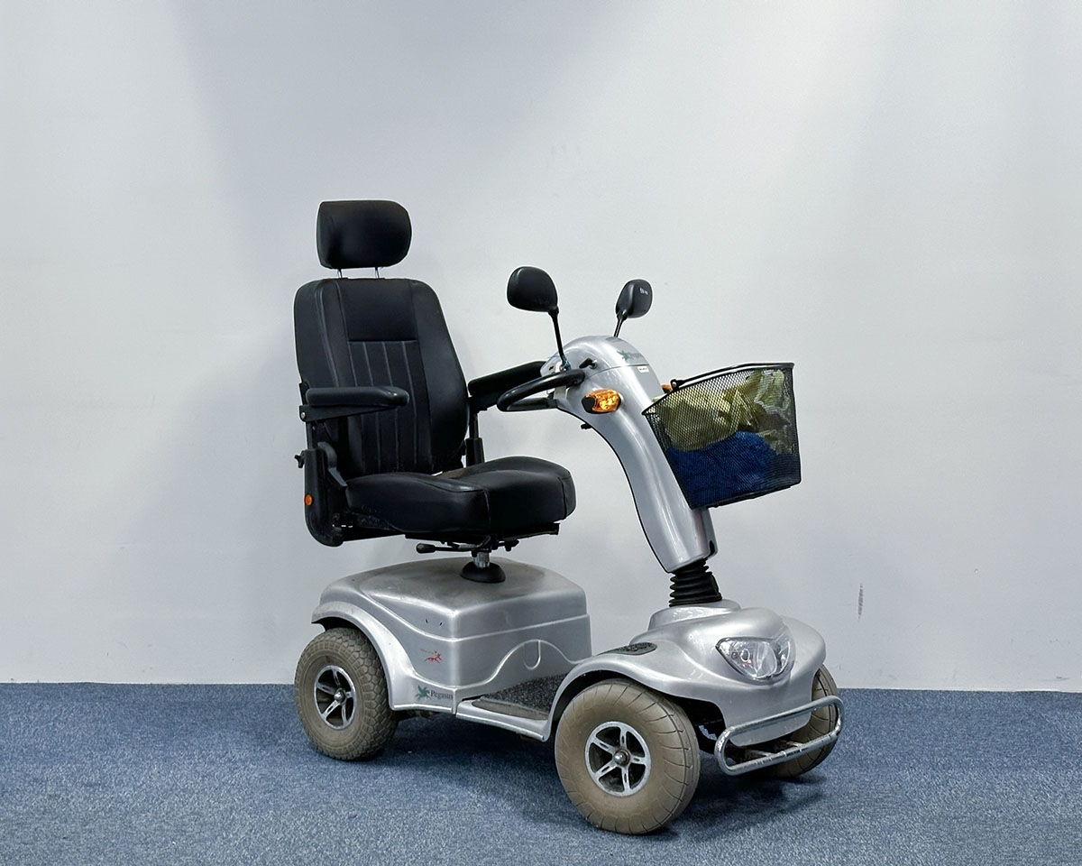 Brugt 4-hjulet scooter med store gode hjul, så stabiliteten er helt i top. Denne scooter er god til både de korte og de lange ture. Størrelsen er god til bykørsel eller længere ture ude i det fri. Desuden er den også nem at have med ind i butikker og storcentre.
