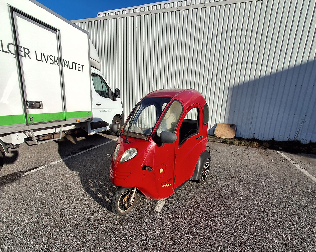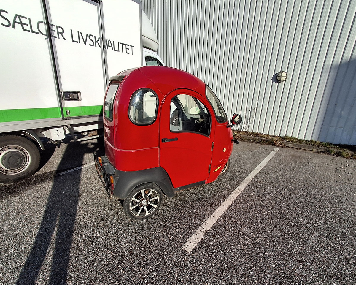 Brugt 3-hjulet kabinescooter, som er et fint alternativ til bilen. Her sidder du i ly for vind og vejr og kommer nemt fra A til B.