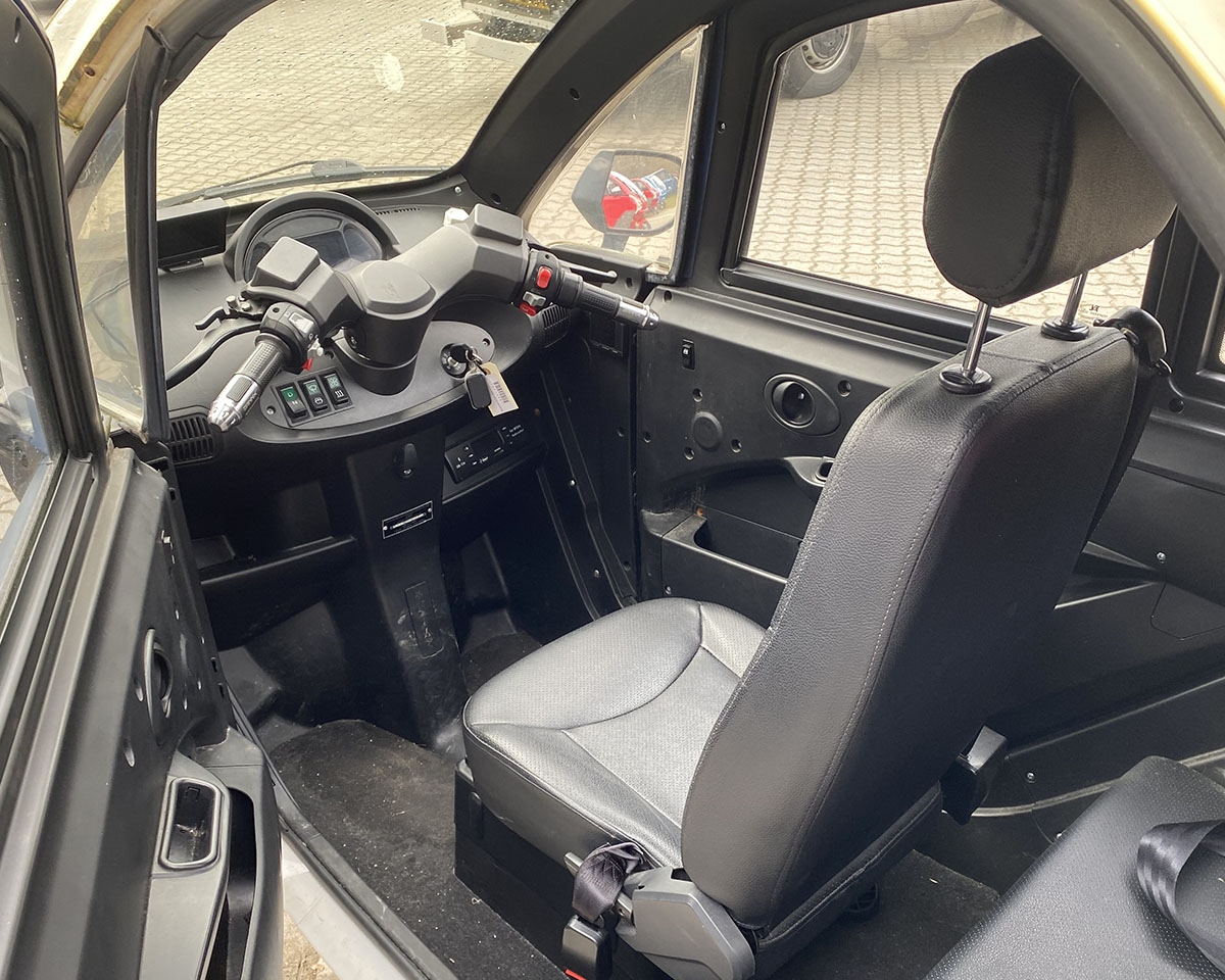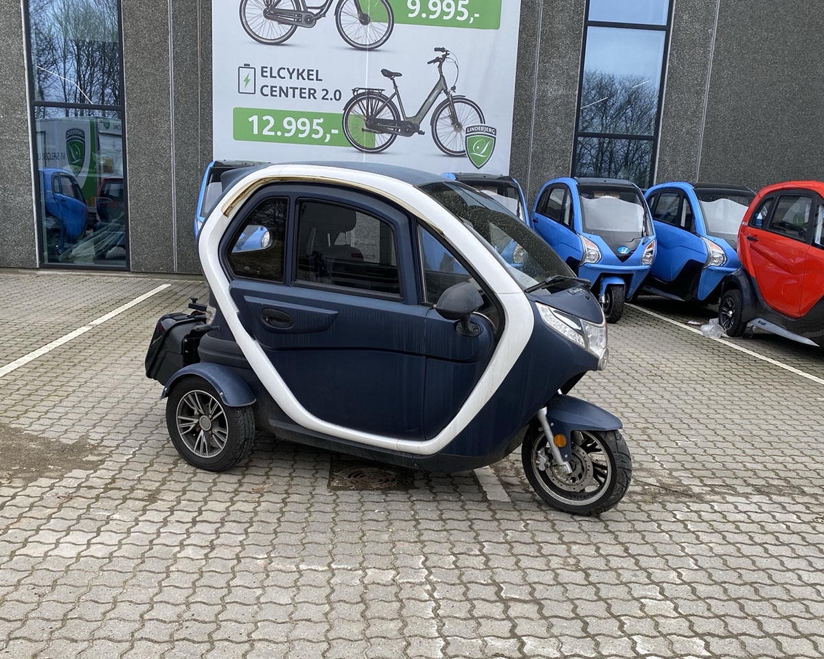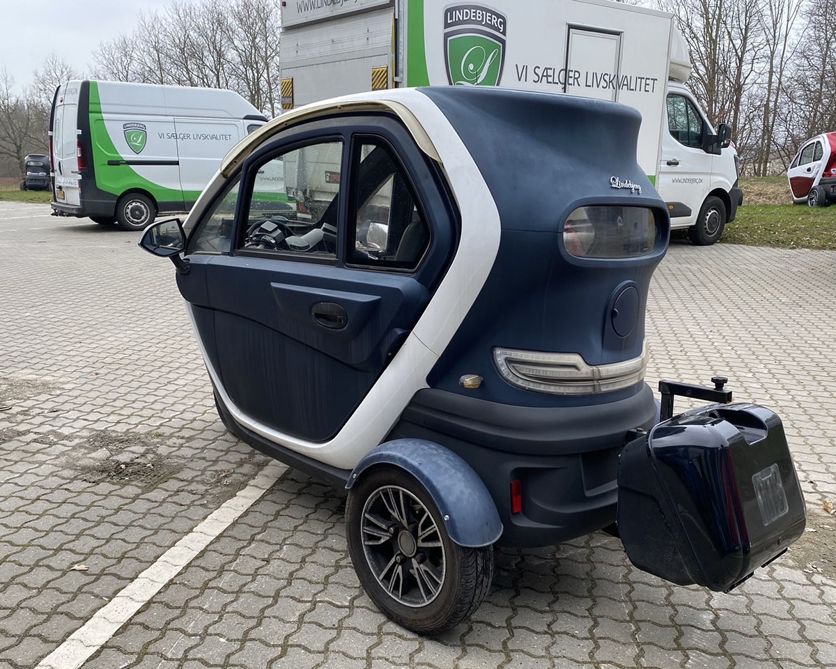 Velkørende brugt kabinescooter i en flot blå og hvid farve. Scooteren er let betjenelig og meget komfortabel. Køretøjet er meget pålideligt og kan med den kraftige motor forcere selv svært terræn og diverse bakker. Med en kabinescooter slipper du for at tænke på upålideligt vejr, når du vil ud og køre. Her sidder du trygt og tørt.