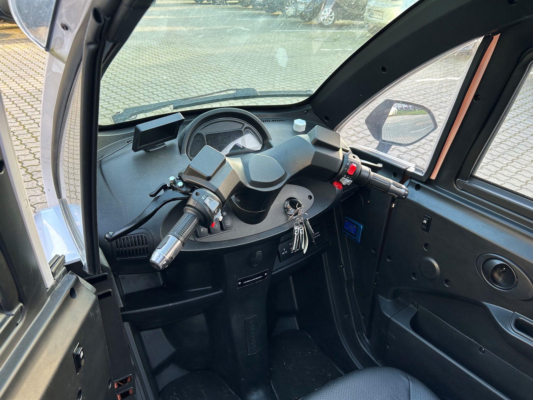 Få ly for vind og vejr i denne velholdte Urban kabinescooter. Du sidder behageligt på det bløde lædersæde, og affjedringen i hjulene gør køreturen ekstra jævn. Skivebremserne sørger for en kontrolleret og rolig opbremsning.
